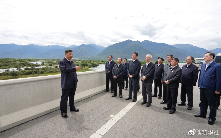 21日中午时分,在西藏考察调研的习近平总书记途经尼洋河大桥时停车,实地察看雅鲁藏布江及尼洋河流域生态环境保护情况。习近平指出,雅鲁藏布江水系是难得的一块绿地、绿肺,它的生态还很脆弱。要以保护为主,保护住这一块“净土”,一起把这件事情做好。(文字记者张晓松、朱基钗;摄影记者李学仁)