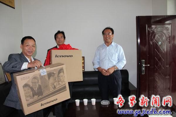 凤翔县政协向横水镇北务村村委会捐赠电脑