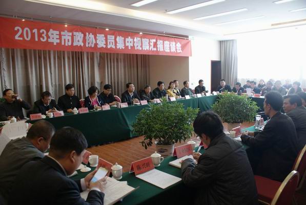 实地视察结束后,在聚秀山庄大酒店会议室召开了汇报座谈会。县政府办、发改局、经贸局、交通局、工业园区管委会、永乐镇等部门负责人以及县政协机关各专委会负责人参加了座谈会。座谈会上,县委常委、常务副县长袁良善代表县委、县政府向视察组汇报了我县经济社会发展情况。市安监局长李朝阳、市招商局长王浩、市工商局长洪智民、山阳县政协主席吴成顺以及崔明平、仰孝升、黄来东等7名市政协委员围绕城镇化建设、工业发展、生态旅游产业、农业主导产业、社会事业和镇政协组建设等方面作了发言,对我县实施“三县”战略目标和发展思路、经济社会取得的成效给予了充分肯定,并提出了很好的意见和建议。