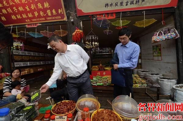 (县政协副主席叶宜海等在凤凰古镇调研食品作坊质量安全情况)