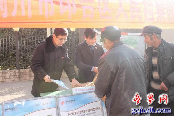 深入开展法律宣传有利于检察工作走近群众、贴近百姓,也有助于提高辖区内居民的法律与维权意识,努力预防和减少治安、刑事案件的发生。“春风得意马蹄疾”,春节即至,祝愿百姓马年吉祥如意,检察事业再创佳绩。( 侯帅 )
