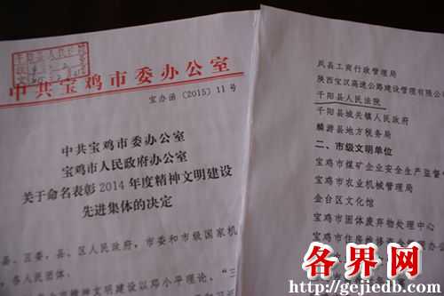 近日,千阳法院被宝鸡市委、市政府授予“市级文明单位标兵”称号。这是该院自2010年成功创建市级文明单位后在文明单位创建活动中荣膺的又一更高殊荣。