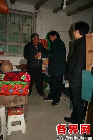 当日下午,董事长段保江、行长张成健分别深入各自包扶贫困户家中。段保江同志见到因长期在煤矿井下作业被肺尘病折磨得形容憔悴,基本丧失劳动能力,依赖药物维持生命的贫困户主韩顺峰时,同情其不幸遭遇,掏腰包给他500块钱,让其买药治病;在年逾八旬贫困聋哑人黄大林家中,董事长段保江叫来监护人,一同到病榻前探望黄大林病情,并掏出几百元现金,让监护人给黄大林购买水果和生活用品。