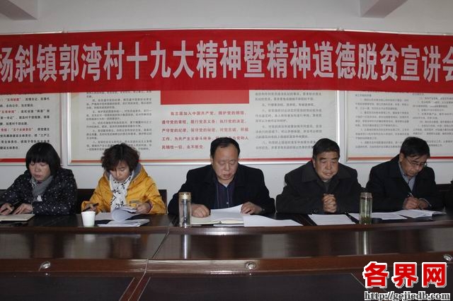 在郭湾村服务中心,区政协驻村工作队队长赵拴扣向贫困群众宣讲了十九大会议精神,并组织他们学习陕西好人赵英娥和杨斜镇励志贫困户吴正锋的事迹,鼓励贫困群众以身边的人物为典范,鼓起干劲,树立脱贫信心,增加脱贫能力。