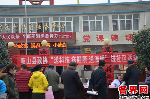 3月19日,岐山县政协组织县卫计、农业、人社、妇联等相关部门及民革支部、医卫界、农业界部分政协委员,深入岐山县蔡家坡镇安乐村社区服务中心开展“送科技送健康送温暖”进社区活动。县政协主席巨文利,副主席李瑾、王明怀现场指导活动。