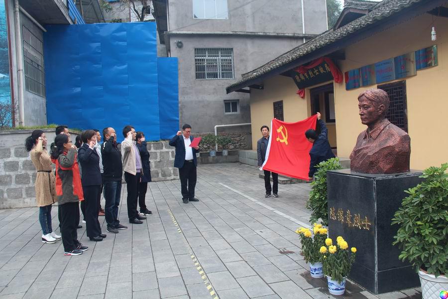 在陈锦章烈士故居前,机关全体党员干部面对党旗,进行庄严宣誓,重温入党誓词,接受心灵的净化和洗礼,牢记共产党员的政治责任和历史使命。