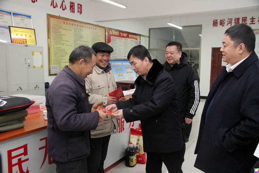 1月15日下午,商洛市检察院检察长刘向东冒着严寒深入包扶村杨峪河镇民主村,走访慰问7户困难群众、2户困难党员和驻村第一书记,调研督导脱贫攻坚工作。