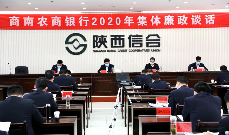 2020年3月15日,商南农商银行在2020年工作会上,纪委书记、监事长金栓俊做集体廉政谈话。受新冠肺炎疫情影响,党委班子全体成员、部室和支行(部)负责人现场接受谈话,除柜面营业人员外全体职工在钉钉软件现场直播中倾听谈话。