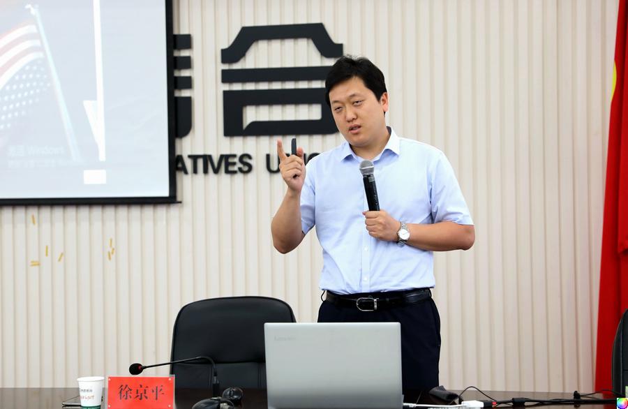 2020年6月12日,博士后、副教授、西北政法大学商学院副院长徐京平来到商南农商银行,主讲《大国崛起与金融博弈》。商南县委常委、副县长黄飞到场,商南农商银行党委委员、副行长杨国军主持,农商银行机关各部室、基层网点各岗位人员倾听讲座。