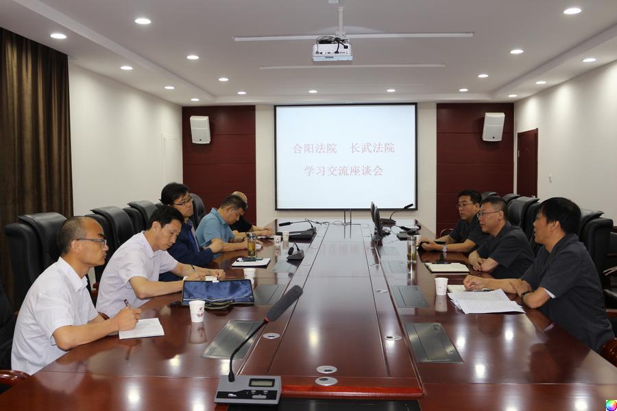 8月19日,合阳县人民法院党组书记、院长徐天宝一行到长武法院交流学习。我院党组书记、院长王旭辉陪同。