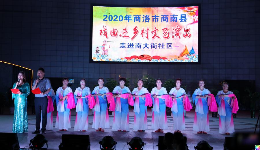 8月28日,夜幕刚一落下,商南县文化广场舞台霓虹闪烁,场内人头攒动,歌声悠扬。由商南县文化和旅游局主办、文化馆承办、南大街社区和商南县爱心艺术协会协办的“戏曲进乡村文艺演出走进南大街社区”正在这里上演。商南县南大街社区党支部书记王双凤致辞,主办方、承办方主要负责人与市民一道观看演出。整台晚会由商南县爱心艺术协会提供节目。