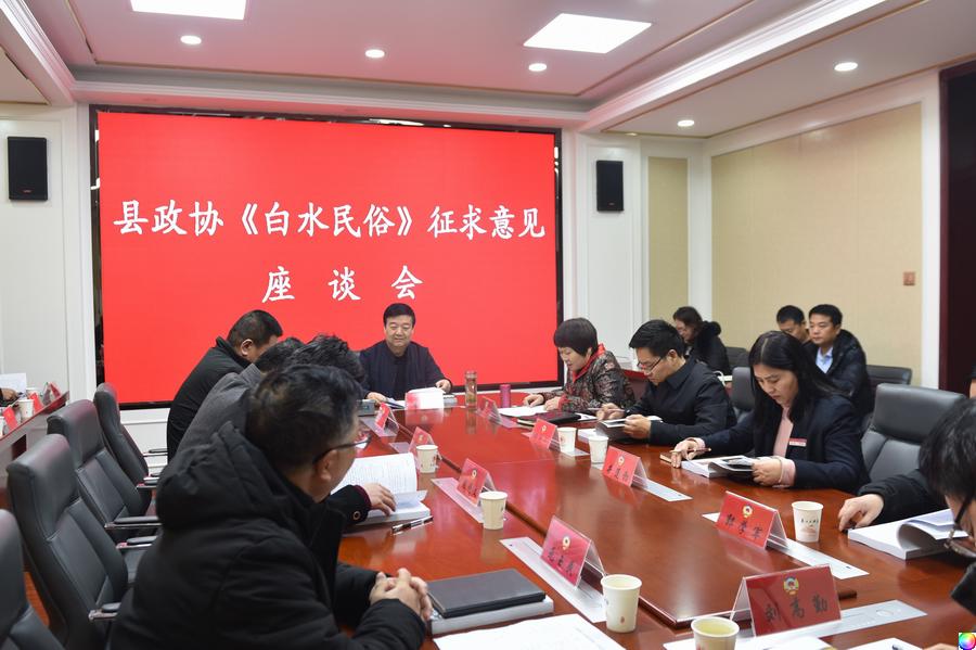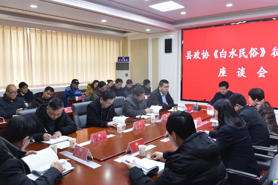 12月15日,旨在反映白水民俗文化全貌的文史资料《白水民俗》征求意见会在四圣故里白水召开。白水县政协主席李全海,副主席屈晖、周晋荣,秘书长、办公室主任杨仲民,县级有关文化单位的领导同志,县政协部分常委及文史资料征集员全体同志参加会议。县政协副主席屈晖主持会议。