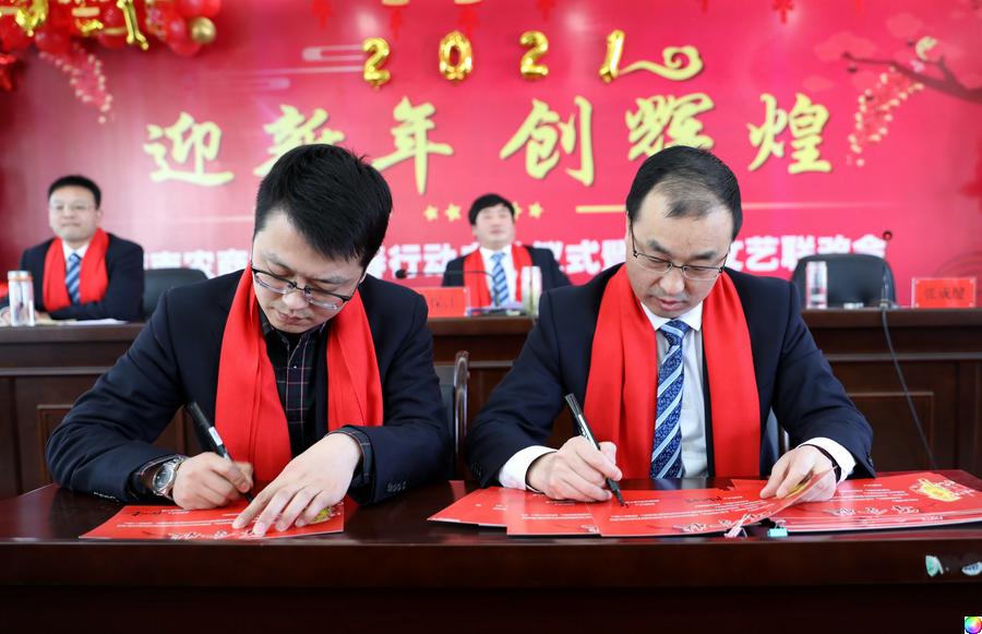 行长张成健与各支行行长签订“军令状”,夯实“盈春行动”开门红目标责任。