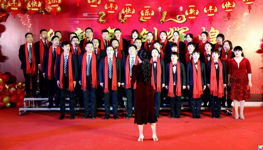 党委班子成员及机关职工合唱的《团结就是力量》《歌唱祖国》,诠释团结就是力量,祖国永远在心中。再次将联欢会推向高潮。