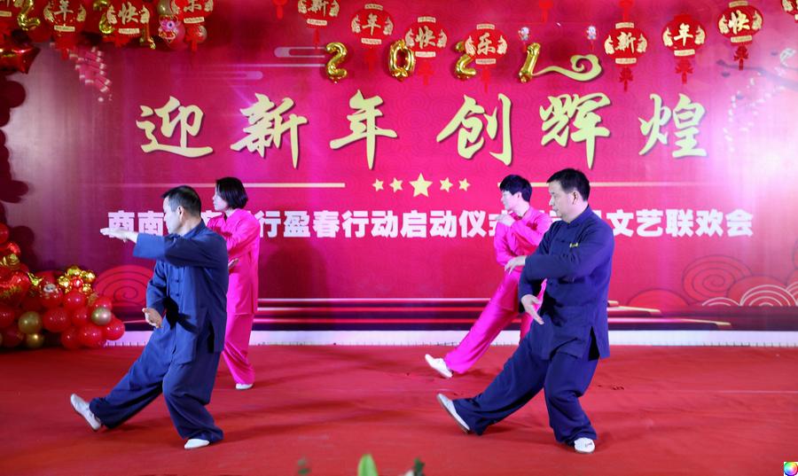 文艺联欢在愉悦和谐中落下帷幕。以“迎新年创辉煌”为联欢会主题,旨在让“盈春行动”行动起来。红彤彤的舞台背景,衬托出祥和温暖的节日氛围,更寓意为民服务工作“开门红”。