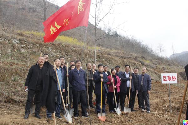 3月15日,区政协机关领导干部积极响应区委区政府号召,组织全体干部职工赴三岔河镇七星村南坡开展义务植树活动。