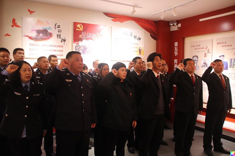 在讲解员的带领下,干警们依次参观学习了“正风肃纪 驰而不息”、“打虎拍绳 警钟长鸣”、“正心铸魂 砥砺前行”、“清正齐家 涵养家风”四个篇章。通过详实的图片和文字资料,全面展示了党和国家领导人对反腐倡廉重要性的指示和决策,警示教育直观形象、内容丰富生动,一个个真实生动的警示案例,为全体干警时刻保持清醒头脑,遵纪守法、廉洁自律,敲响警钟。随后,全体干警整齐列队,面向党旗重温入党誓词,在激昂响亮的宣誓声中,作出了对党忠诚的庄严承诺。
