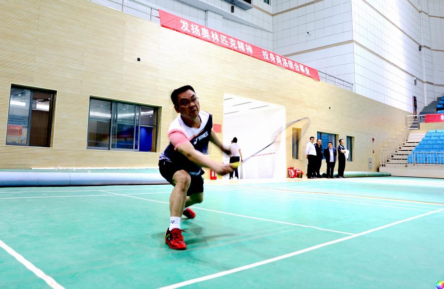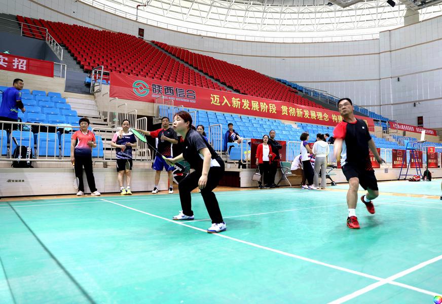 羽毛球场地喊杀连天。男子单打强强对决,商南农商银行选手张教洲脱颖而出,获得季军。混双决赛,何广平/李红梅组合曾一度领先,之后比分交替上升,最终获得亚军。
