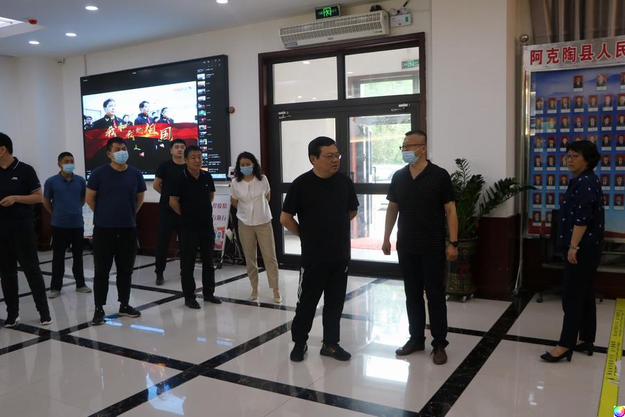 江苏省南通市中级人民法院党组书记曹忠明一行首先来到阿克陶县人民法院立案诉讼服务中心,对阿克陶县法院诉源治理、矛盾纠纷调处、为民服务等工作开展情况进行详细了解询问,在充分肯定成绩的同时,与陆卫国进行亲切交流。