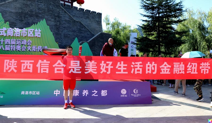 9月10日上午,中华人民共和国第十四届全国运动会、全国第十一届残疾人运动会暨第八届特殊奥林匹克运动会火炬传递活动第十三站,在商洛市商州区举行。陕西信合职工张君,担任本次火炬传递第61棒火炬手。