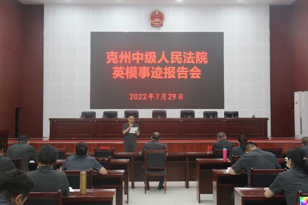 为深入贯彻落实党的十九届六中全会和自治区十届三次全会精神,扎实推进“深刻领悟‘两个确立’决定性意义、坚决做到‘两个维护’”主题教育,充分发挥先进典型示范作用,激励引导广大法院干警忠诚履职、顽强拼搏,大力营造学习英模、崇尚英模、争当英模的良好氛围,2022年7月29日,克州中级人民法院举行英模事迹报告会,全体干警参加报告会。