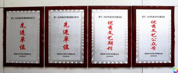 在表彰2022年度全市文联系统先进时,商洛市写作学会获“全市文联系统先进单位”“信息工作先进单位”,学会期刊《秦岭文化》获“优秀文艺期刊”,学会公众号《商洛写作》获“优秀文艺公众号”。会长朱金华获“先进文艺工作者”,会员吴振春、王栋贤获“优秀文艺人才志愿服务者”称号。近年来,商洛市写作学会在商洛市委宣传部、市文联正确领导下,坚持“二为”方向、“双百”方针和“三贴近”原则,作品远离“三俗”,围绕中心服务大局,为会员搭建平台,极大地激发创作积极性,推出一大批有高度和深度的文艺精品。