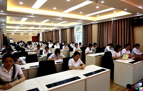 比赛严肃激烈,键盘敲击声、点钞沙沙声此起彼伏,参赛选手神情专注,沉着冷静,展现出商南农商银行职工队伍顽强拼搏、争创一流精神风貌。