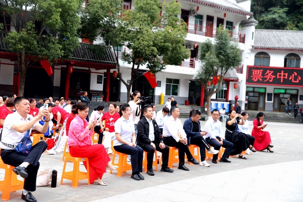 商南县金丝峡景区管理委员会主任朱峰在致辞中指出,近年来,商南县委、县政府立足资源优势,依托“一都四区”建设机遇,聚力建设“四大名城”,以5A金丝峡精品景区建设为抓手,着力打造“一峡一湖一峰一道”精品旅游线路。金丝峡在“四大名城”建设中主动作为,创建成为中国避暑旅游目的地,金丝峡红叶、金丝峡云海载入“全国天气气候景观观赏地”名录。本次活动,策划了诗歌朗诵、文艺汇演、短视频大赛等多项内容,旨在让广大游客了解金丝峡旅游品牌,借助节会活动平台进一步促进金丝峡营运单位与社会各界交流合作。朱峰同志表示,为庆祝新中国成立75周年,开展文艺活动,是对祖国母亲的深情告白,歌颂大好河山,激发爱国热情,弘扬民族精神,共同为建设更加美好的祖国,贡献智慧和力量。