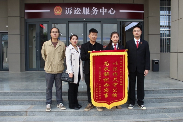 10月14日上午,兴平市西城街道办某村9组、10组独生子女户代表来到法院,向执行法官何睦等送来“以法作尺守公信 为民解忧办实事”的锦旗,以表示衷心感谢和崇高敬意。