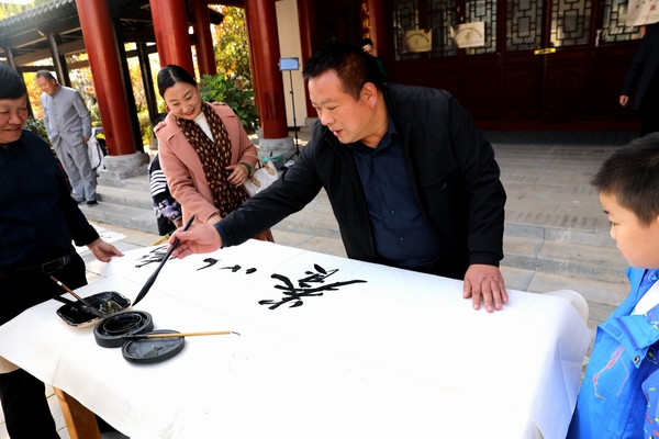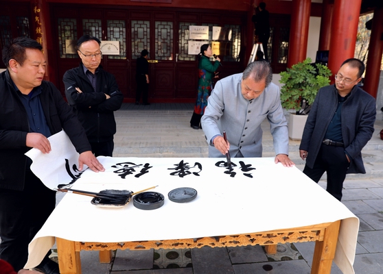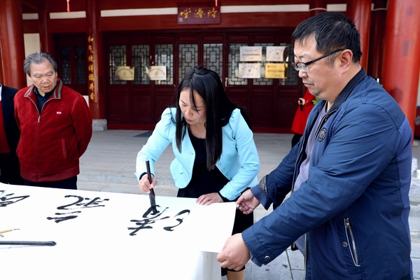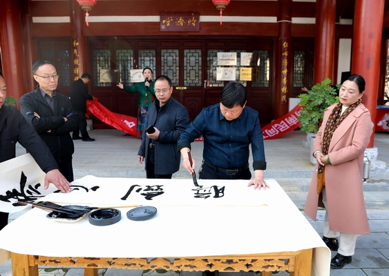 艺术作品展示环节,参加采风活动文艺家挥毫泼墨,《青云万里》《天朗气清》……一幅幅饱含深情的书法作品,将采风活动推向又一个高潮。