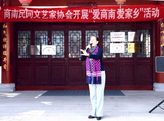 商南县民协常务副主席朱金华演唱《天边的骆驼》,拉开文艺演出序幕。歌曲以赞美骆驼坚强不屈的性格,寄托对勤劳百姓的歌颂。