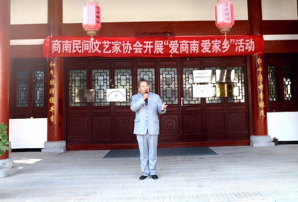 商南县政协原副县级督导员、县民协名誉主席刘凤鑫在讲话中指出,县民协组织开展“爱商南,爱家乡”民间文化采风活动,很必要,也很有意义,这也是增强文化自信的具体实践。有道是高手在民间,民间有无穷的智慧,千百年来积淀形成数不胜数的神话传说、民间故事、民间歌谣、民间戏曲、民间工艺美术作品,都值得我们认真长期学习、实践和传承。几千年来,一代又一代中华儿女不断地从神话传说、俚语故事、民谣小戏里,从乡风民俗、村规家训、剪纸年画中获得精神滋养,砥砺家国情怀,形成独特的中华文明和民间文化,这些就是民间文艺家取之不竭的创作源泉和精神富矿。刘凤鑫同志激励文艺家们要以本次采风活动为契机,不断挖掘、整理、创作出更好更多的民间文化作品,服务群众,服务社会,共同携起手来,在商南这片文化的沃土上奋勇前进,在大秦岭封面里绽放人生精彩。