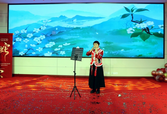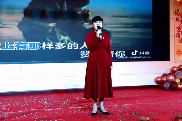 《妻子》这首歌唱的是军人的妻子,联欢会上尚蕾的演唱,让在场农商银行人联想到默默支持农信事业的家属们,是她们抗起家庭责任,分担家庭负担,激起内心感恩之情。