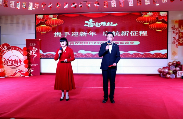 12月31日下午,在2025年元旦佳节来临之际,为进一步增强员工归属感、幸福感和凝聚力,营造积极向上企业文化氛围,商南农商银行举办“携手迎新年 启航新征程”2025年迎新联欢会。农商银行班子成员、机关和营业部全体职工欢聚一堂,载歌载舞,喜迎新年的到来。尚蕾、郑朝军主持联欢会。