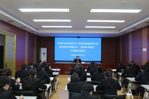 培训会上,何波院长深入分析了当前审判执行工作中司法行为的现状、存在问题及原因,结合上级法院在审务督察中发现的具体问题,从案件流程管理、文书制作、庭审规范等环节的具体要求进行了详细讲解,阐述了从立案、审理到执行,每个步骤要遵循的法律程序和规章制度。就如何规范司法行为,助推审判执行“质效双优”,提出具体要求。一是抓好法官素质提升。要秉持“以人为本”理念,在司法实践中顺应人心、民心和公心,以公平、公正、公开的原则处理案件,确保每一个案件的处理都能经得起法律和历史的检验。将理论与实践紧密结合,把所学灵活运用到实际审判中,积极参与疑难复杂案件研讨,积累实战经验,做到学以致用、用以促学。在面对各类纠纷时,设身处地感受当事人处境,精准把握案件背景与矛盾焦点,融入人文关怀,实现法律效果与社会效果的有机统一。二是抓好管理精细运作。要优化案件流程管理,对立案、审理、执行等各个环节设定严格的时间节点与质量标准,通过信息化系统实时跟踪监督,杜绝案件超审限现象。同时,要加强人员管理,明确各部门、各岗位工作职责,完善绩效考核机制,充分调动干警工作积极性,形成权责明晰、运转有序的工作格局。三是抓好长效机制落实。要结合法院工作实际,制定涵盖审判管理、队伍建设、廉政监督等全方位的制度体系,确保各项工作有章可循。在落实方面,要定期对制度执行情况进行检查评估,及时发现问题、整改问题,使长效机制真正落地生根,为审判执行工作提供坚实的制度支撑。