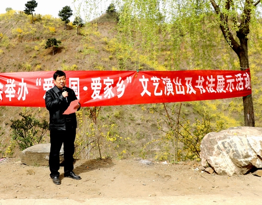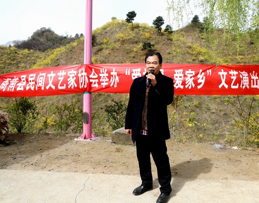 商南县政协原副县级督导员、县民协名誉主席刘凤鑫讲话指出,在这春暖花开、草长莺飞的美好时节,县民间文艺家协会在试马连翘基地举办"爱祖国·爱家乡"文艺演出和书法艺术创作活动,为民间艺术家提供了很好的学习交流、展演展示平台及舞台,很有意义。今天来的都是商南文化艺术界精英,希望大家充分发挥各自专业特长和优势,充分挖掘商南民情民俗、民歌民谣等民间文化,传承弘扬民间文化,为繁荣商南文化事业做出应有贡献。