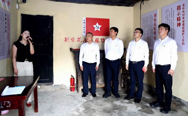 8时15分,商南农商银行党委班子成员、机关副职以上管理人员、各支行党支部书记、网点负责人及部分党员代表,来到商南县红色教育基地——刘家花屋。这里作为商南县最早的革命根据地之一,承载着厚重的革命历史。全体党员认真聆听讲解员讲述革命先辈英雄事迹,通过一幅幅珍贵历史图片、一件件饱含革命故事的文物,深切感受到革命时期的艰辛与不易,深刻领悟到中国共产党人坚定的理想信念和为人民谋幸福的初心使命。鲜红党旗下,农商银行党委副书记、行长金栓俊带领全体党员庄严地重温入党誓词,誓言铿锵,表达了对党的忠诚和为党的金融事业奋斗终身的决心。党委书记、董事长王春来在革命旧址讲话时指出,眼前的青砖灰瓦镌刻着革命先辈的信仰与热血,斑驳的墙垣无声诉说那段浴血荣光的岁月,这里不仅是历史的见证者,更是激励我们奋勇前行的精神灯塔。作为新时代党员,要从革命旧址中汲取力量,把先辈不畏艰险、攻坚克难的精神融入血脉,在各自岗位上勇挑重担、开拓创新,让红色基因在推动农村金融事业发展中绽放新的时代光芒。活动开展,让党员干部职工接受一次深刻的党性教育和精神洗礼,激励全员继承和发扬革命先辈优良传统,以更加饱满的热情、昂扬的斗志投入到为民服务工作中。