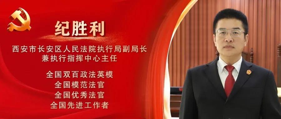 纪胜利,中共党员,2003年12月参加法院工作,现任陕西省西安市长安区人民法院执行局副局长兼执行指挥中心主任,曾荣获“全国双百政法英模”“全国模范法官”“全国优秀法官”“全国先进工作者”等荣誉。